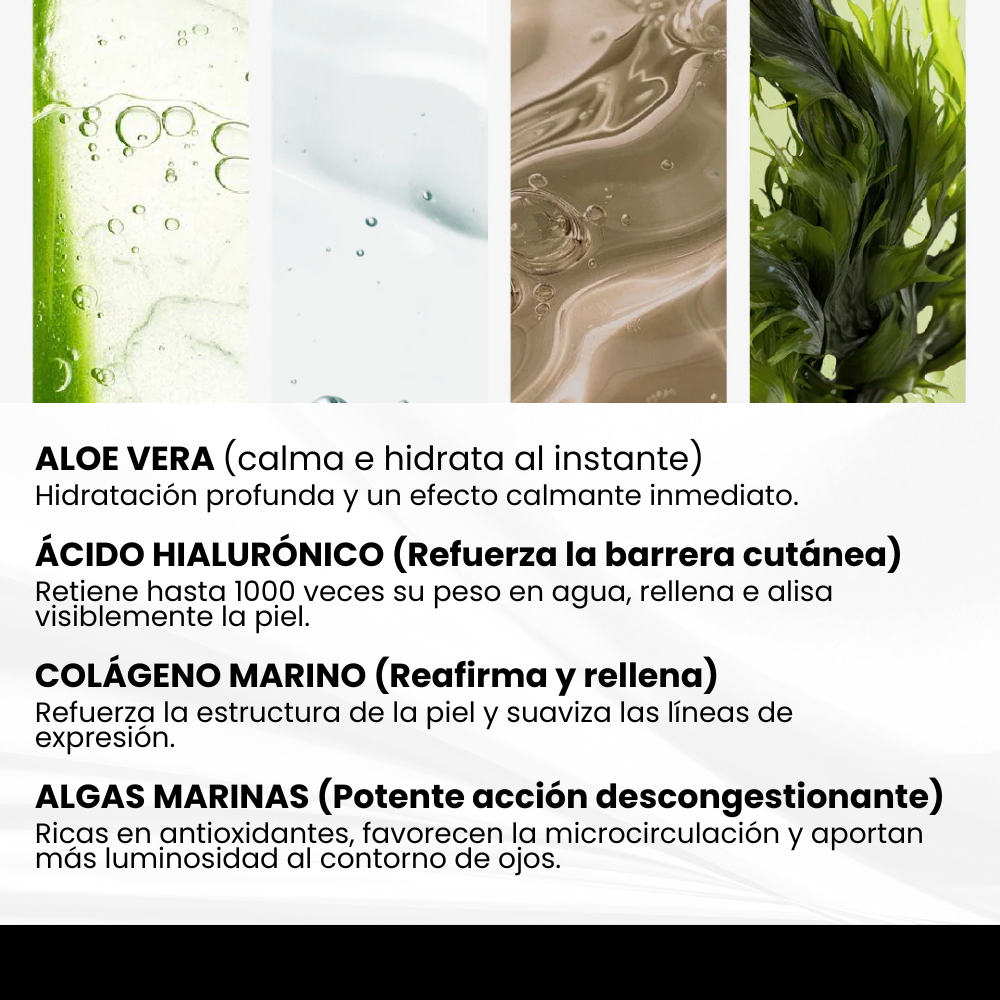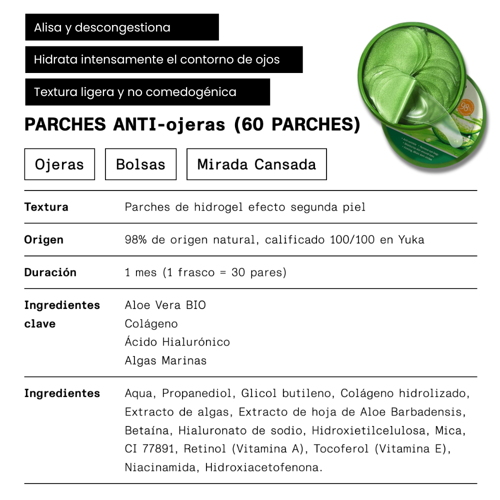 Su formato en parches de hidrogel actúa como un tratamiento exprés que atenúa visiblemente bolsas, ojeras y signos de fatiga.