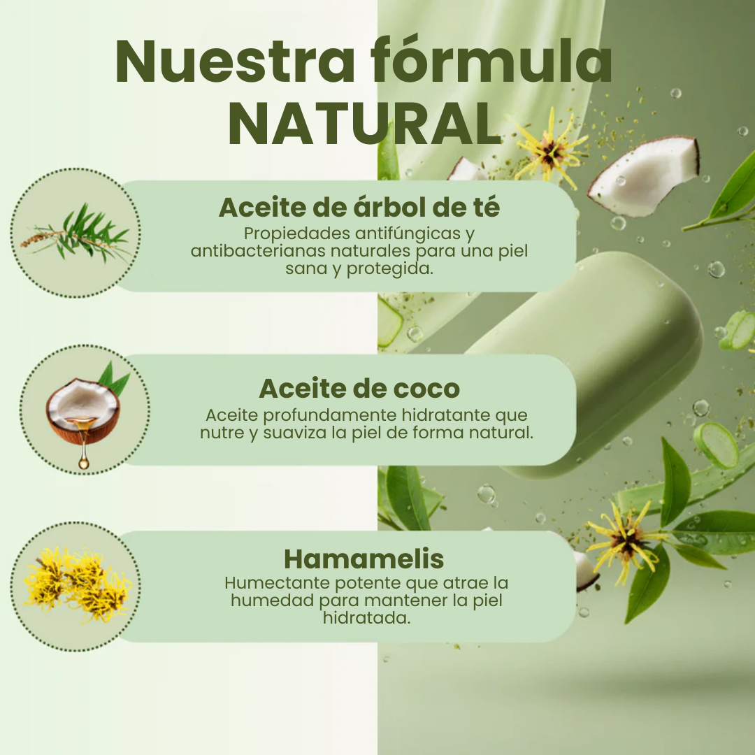 Los ingredientes naturales (aceite de árbol de té, coco, lavanda) están diseñados para calmar mientras curan, no para quemar ni resecar la piel como muchos productos químicos.