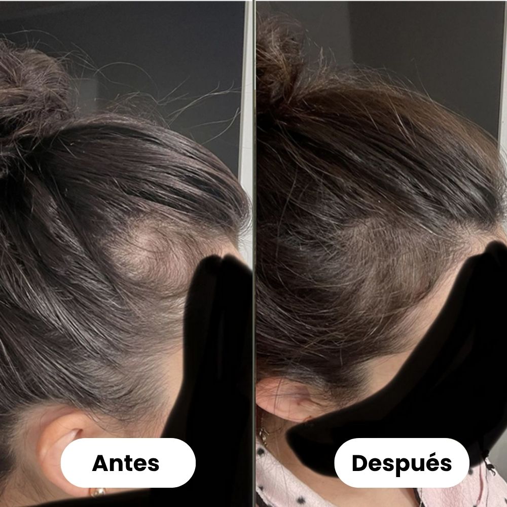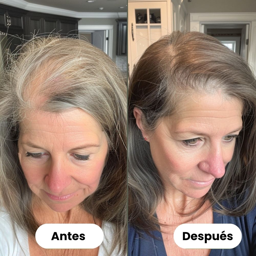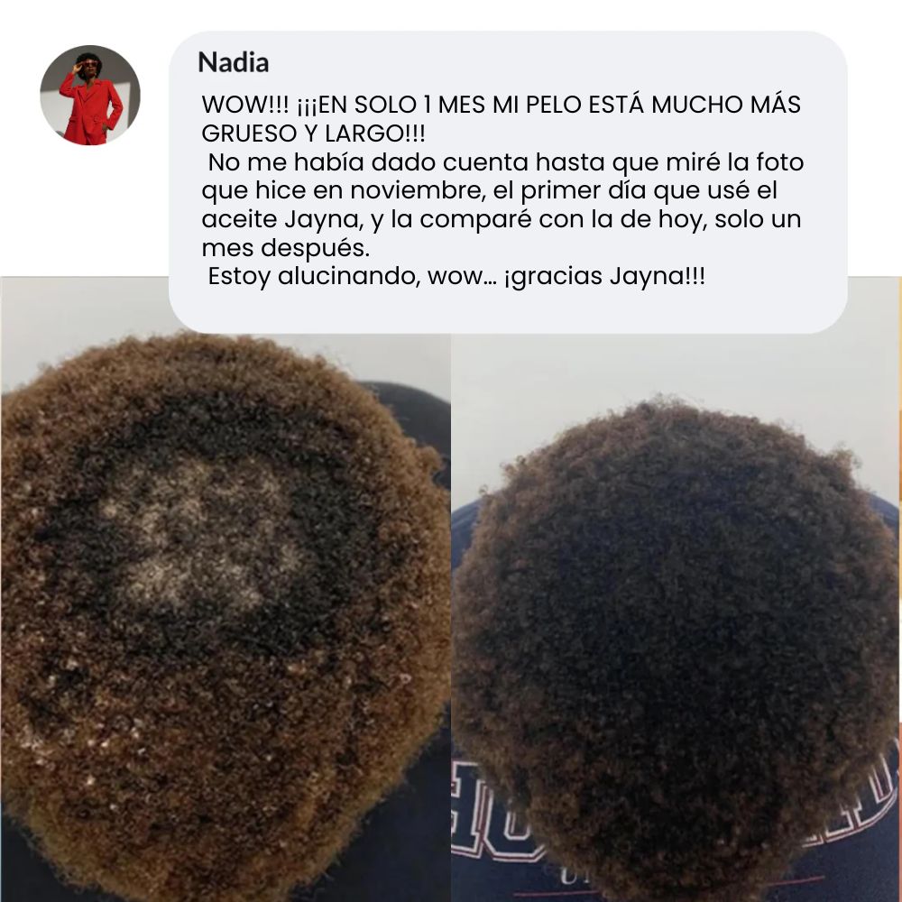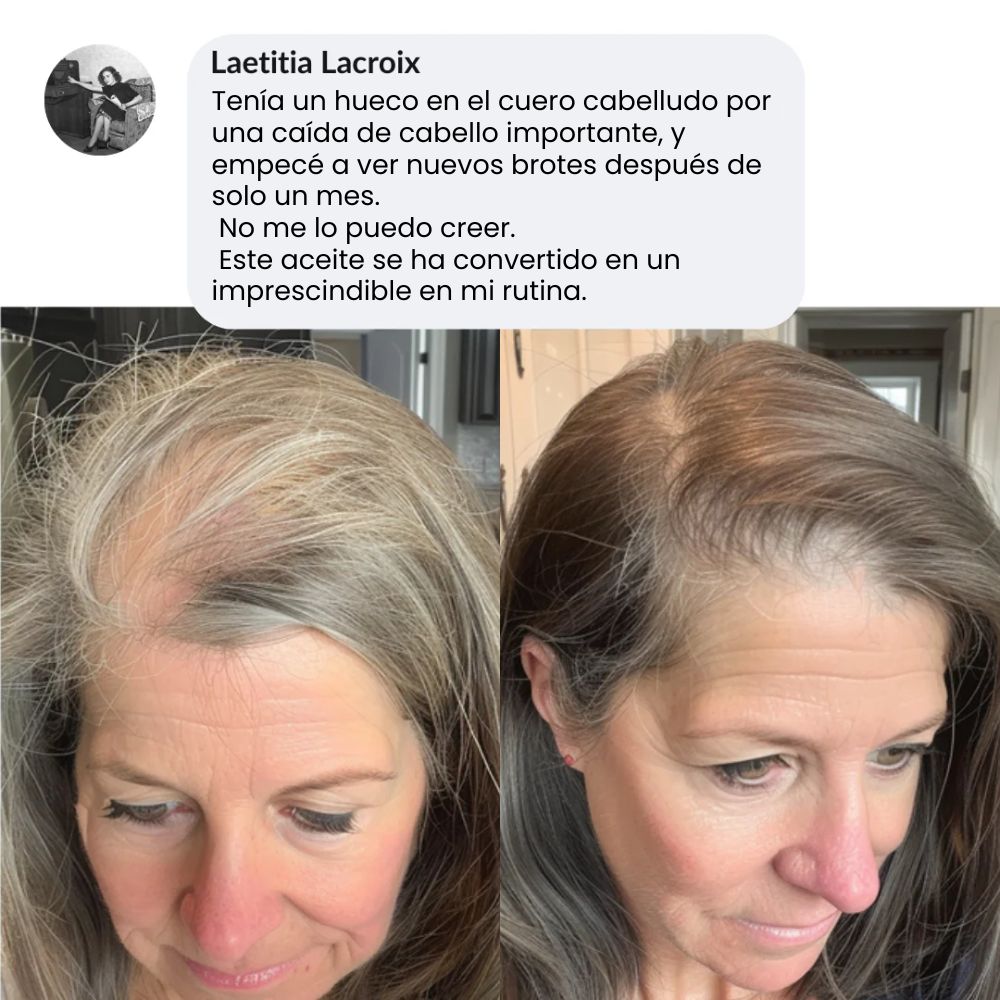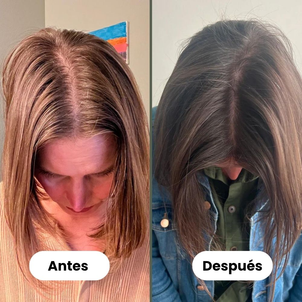 Empecé a notar muchas zonas claras por la menopausia y estaba desesperada. Desde que aplico el sérum de Jayna tres veces por semana, mi pelo se ve más fuerte, brillante y ya no encuentro tantos cabellos en el cepillo. Lo he recomendado a mis amigas.