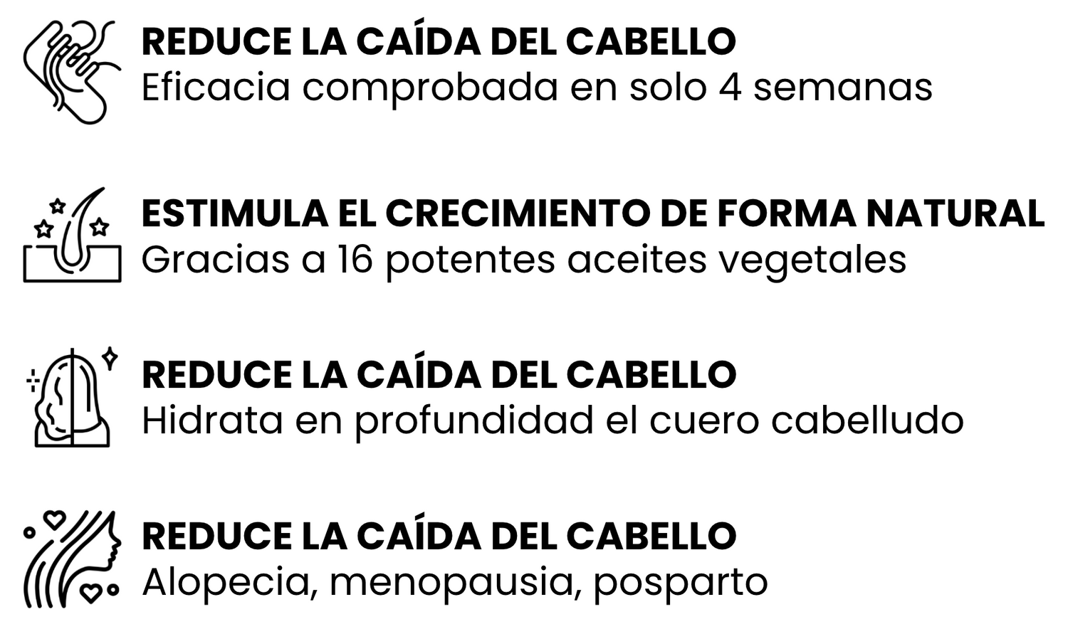 Su fórmula 100% natural estimula el crecimiento del cabello respetando el cuero cabelludo.»